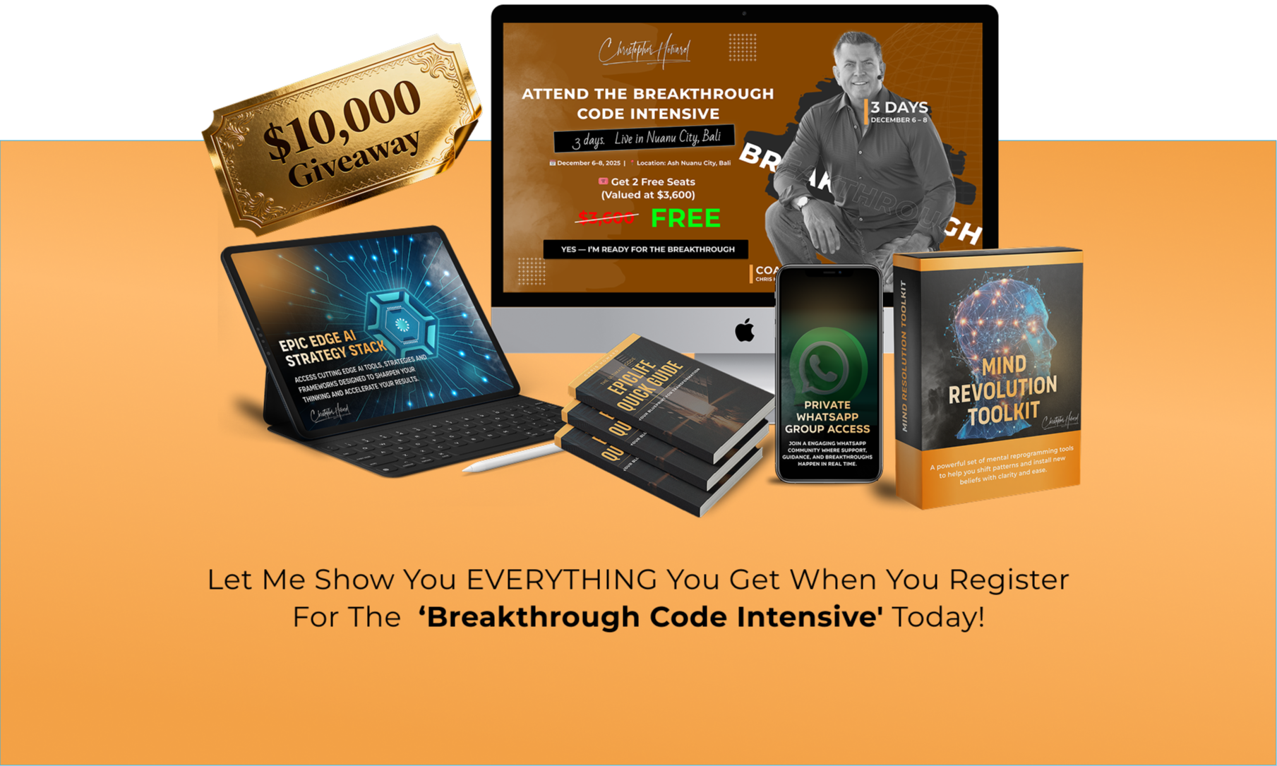 - Your 2 free seats to the Breakthrough Code Intensive in Bali (Dec 6th – Dec 8th)